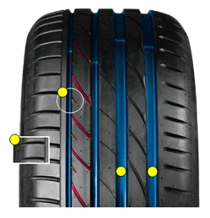 VS5采用全新的高剛性花紋設計,非對稱的優化設計,科學設計的小切角可以快速破開水膜,具有增強排水性的作用,三寬一窄的主溝