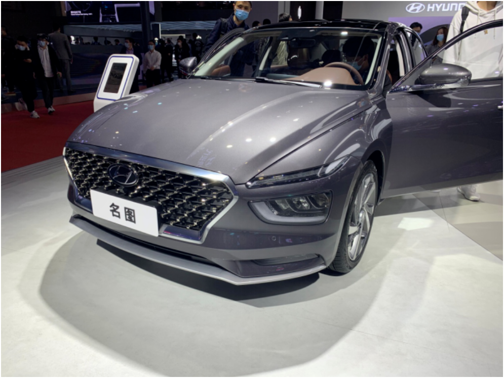全新一代名圖在上海車展現場占據了北京現代展臺的C位。采用全新轎車家族化設計理念的它一改昔日老款車型的四平八穩,變得極富個性。